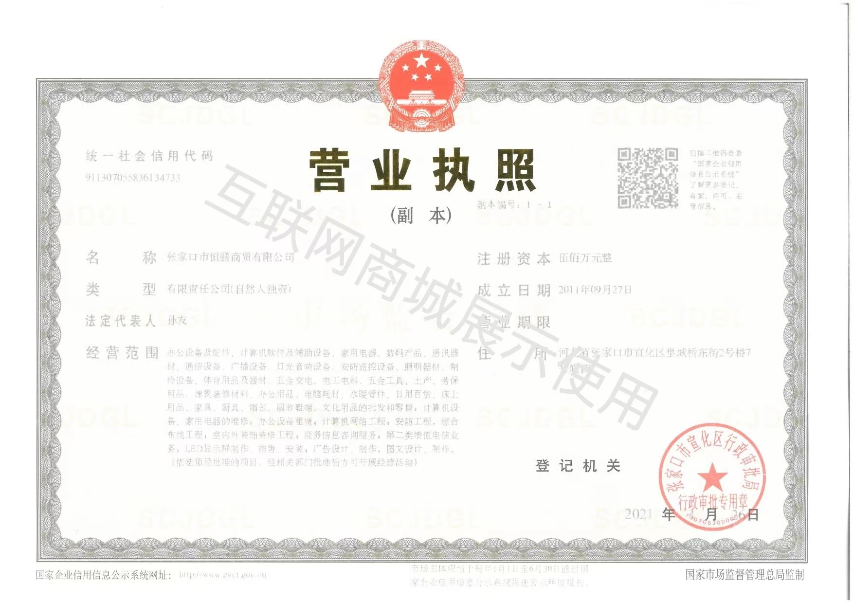 Copyright © 2025 ICP備案號(hào):冀ICP備18019872號(hào)-2 EDI備案號(hào):冀B2-20210579 公安備案號(hào): 營(yíng)業(yè)執(zhí)照號(hào):張家口市恒鵬商貿(mào)有限公司 公司名稱(chēng):張家口市恒鵬商貿(mào)有限公司